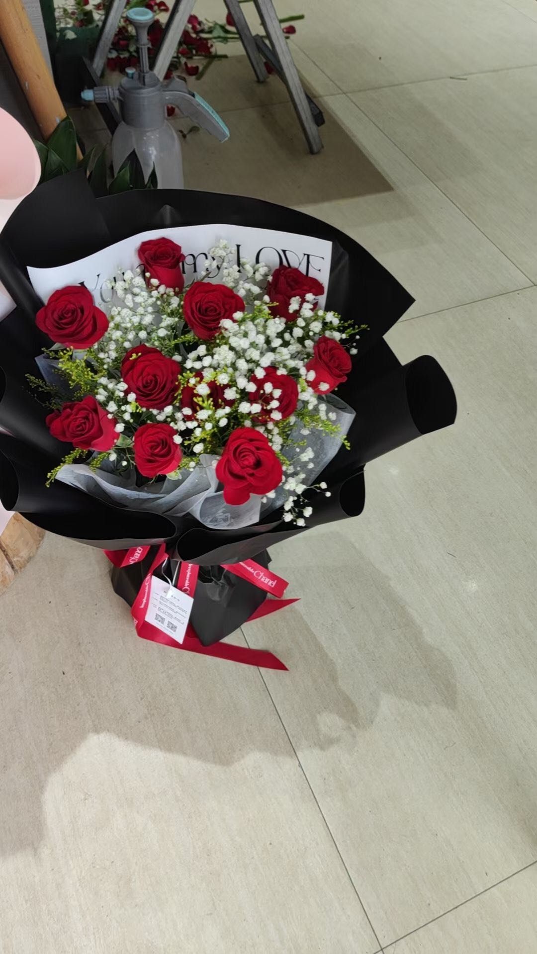 夜上海论坛6支粉玫配满天星花束(共3束) |