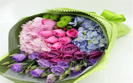 夜上海论坛玫瑰康乃馨绣球桔梗混搭花束 |