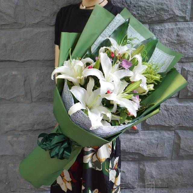 13朵白百合花束 两束 (外包装用不同颜色的) |