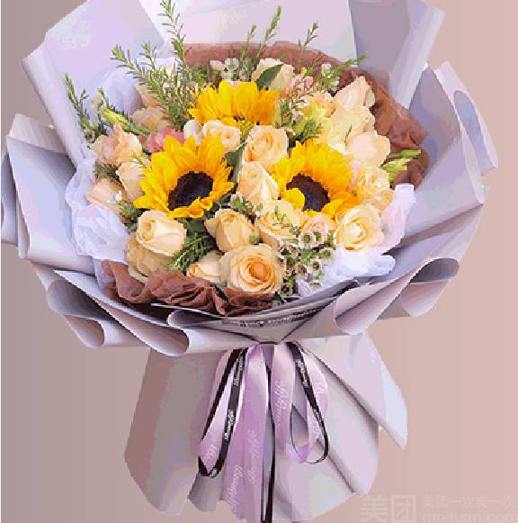 21朵香槟玫瑰3朵百合花束 |