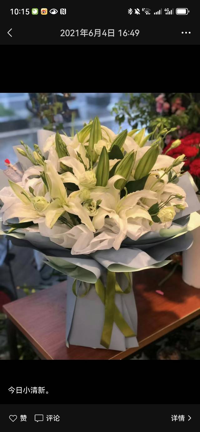 夜上海论坛11支双头白百合加5支绿桔梗花束,如图 |