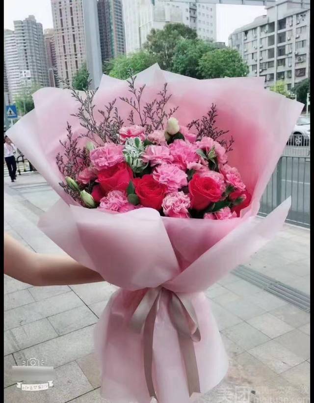 11支粉康乃馨 4支红玫瑰花束,如图 |