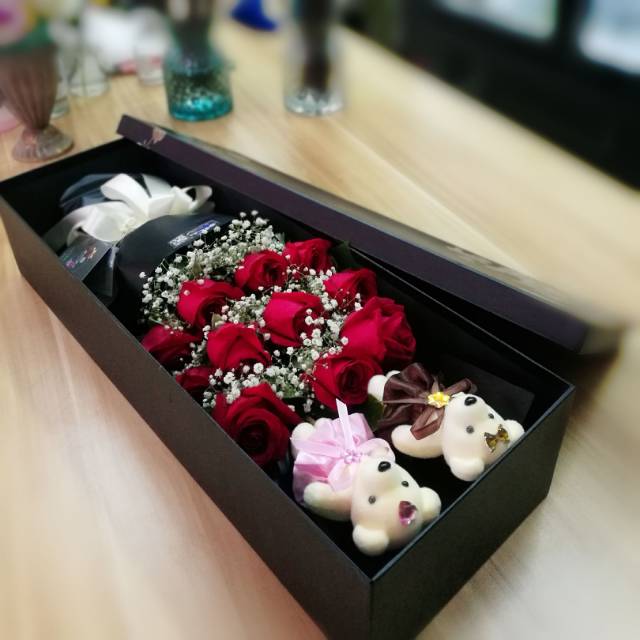 夜上海论坛11朵红玫两小熊礼盒,如图包装 |
