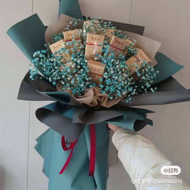 11朵香槟玫瑰满天星花束+11包25的芙蓉王 |