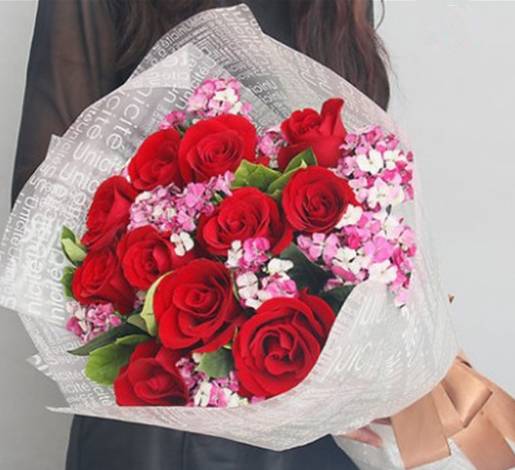 19朵红玫瑰新娘手捧花,如图包装,有卡片,尽快送达 |