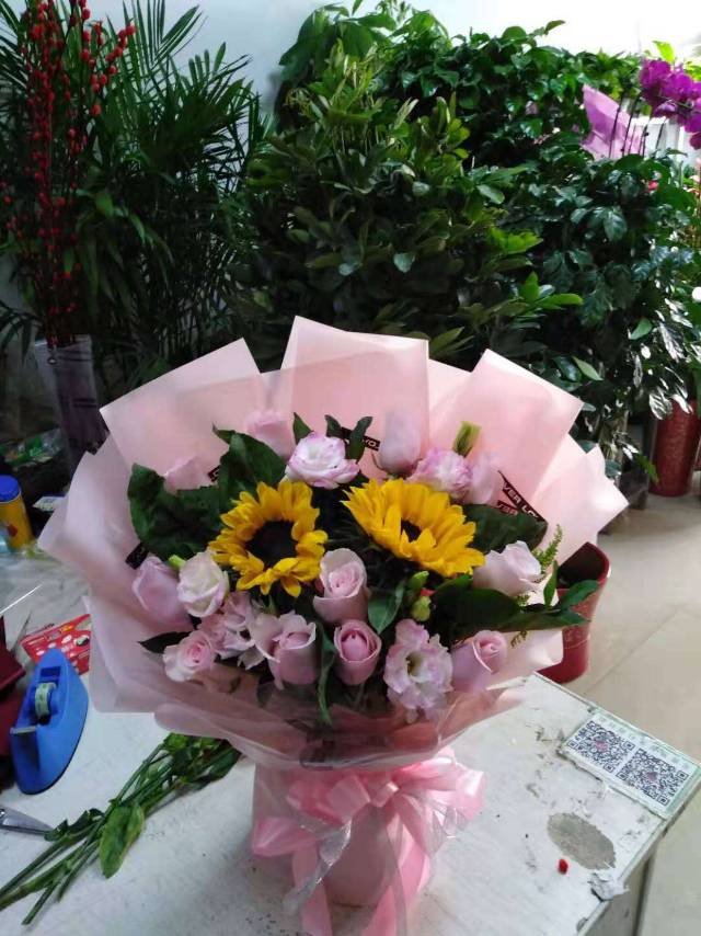 夜上海论坛19朵粉玫瑰满天星花束 如图 |
