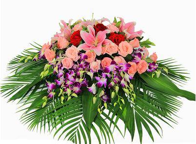 粉玫瑰 红玫瑰 粉百合 紫洋兰 散尾 巴西叶 (带一个花瓶) |