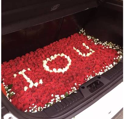 夜上海论坛精选300朵红玫瑰后备箱,做字,左边❤右边雨,周边配一点白色满天星,2条灯珠+气球, |