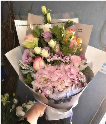 夜上海论坛11朵玫瑰(紫 红袖 粉)1个粉绣球 搭配桔梗 绿叶 银叶菊 亲灰色包装纸 |