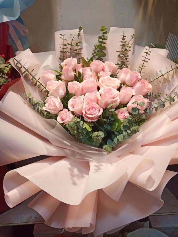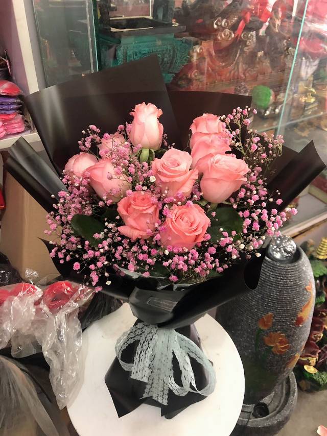 9支粉玫,用黑色包装纸包装,客户到店自提 |