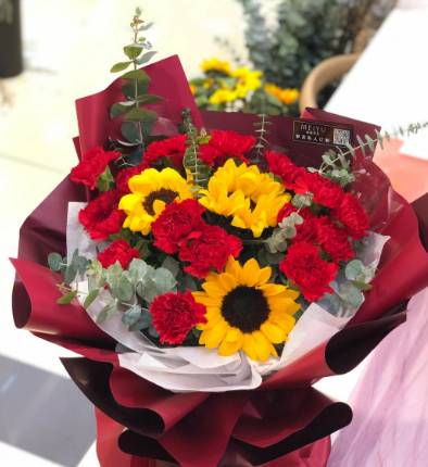 33朵红康乃馨3向日葵混搭花束 如图 |