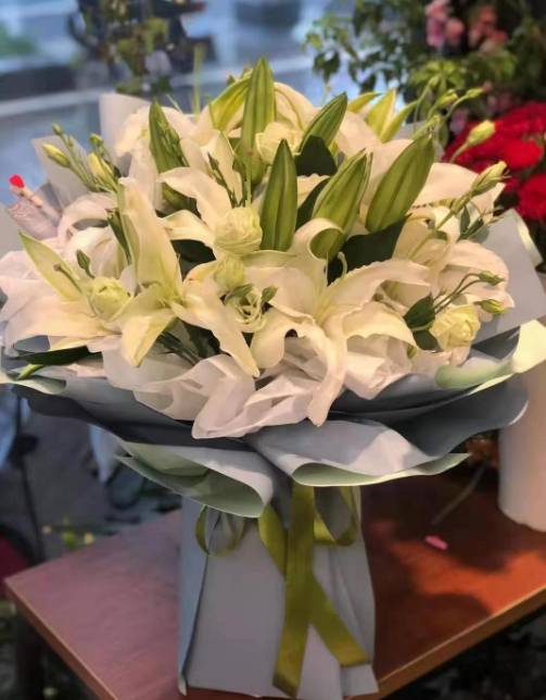 10支多头白百合配绿洋桔梗花束(40朵百合以上) |