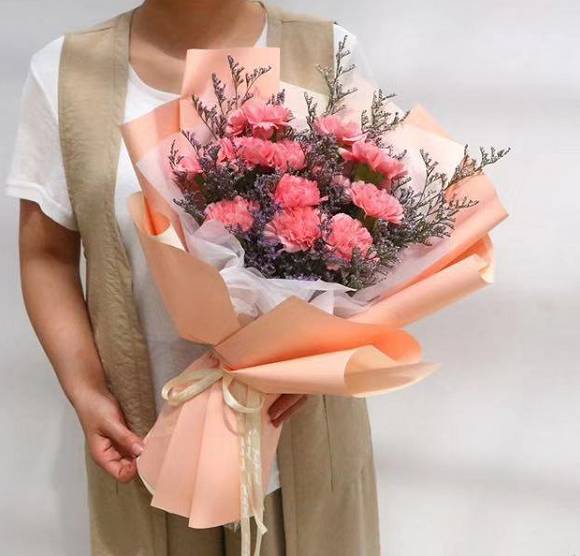 夜上海论坛11朵粉色康乃馨花,花材新鲜,包装大气好看,卡片,如图 |