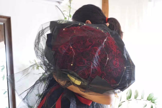 夜上海论坛红玫瑰33朵,黑纱裙,红色花结,放led灯,花材一定要新鲜。