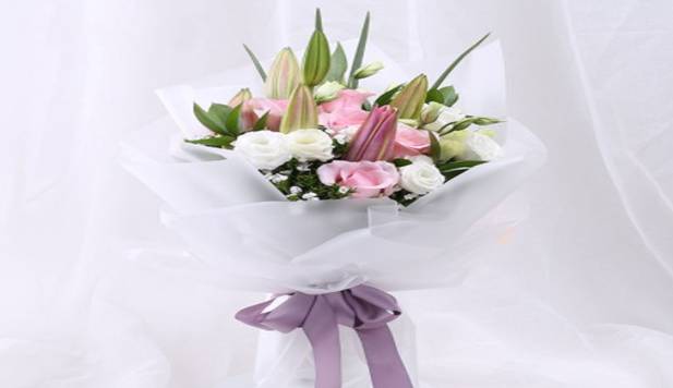 6支粉玫瑰4支白色洋桔梗 2支多头粉百合花束 |