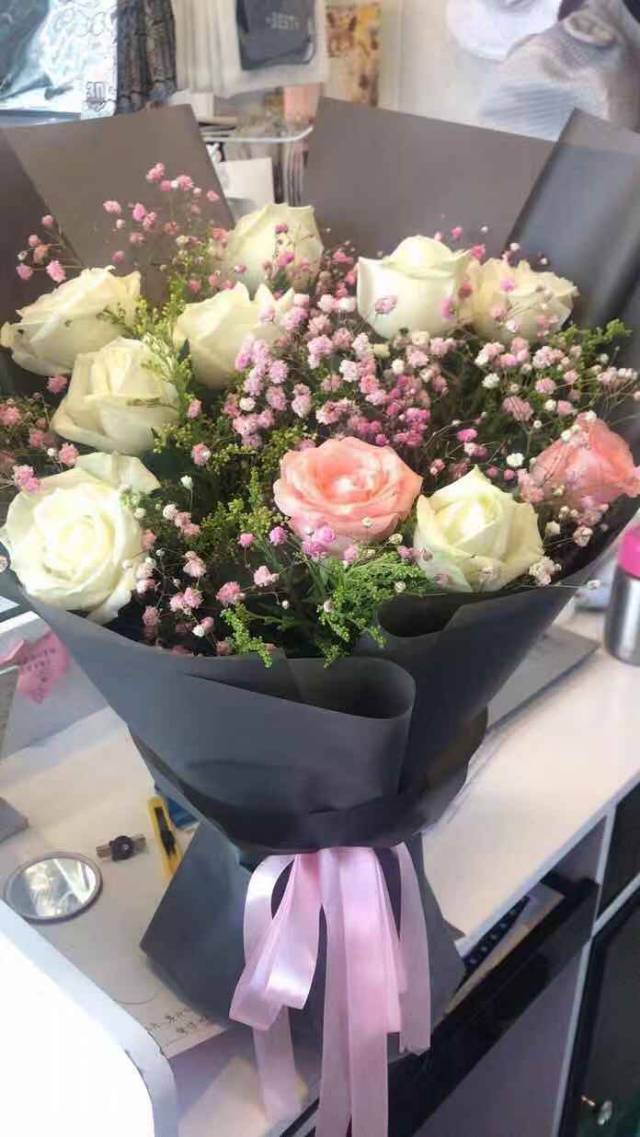 夜上海论坛深情时光-7支白玫瑰+2支粉玫瑰鲜花束如图(白玫换粉玫,配花粉色满天星),包装大气好看,有卡片,中午12点以后送到。 |