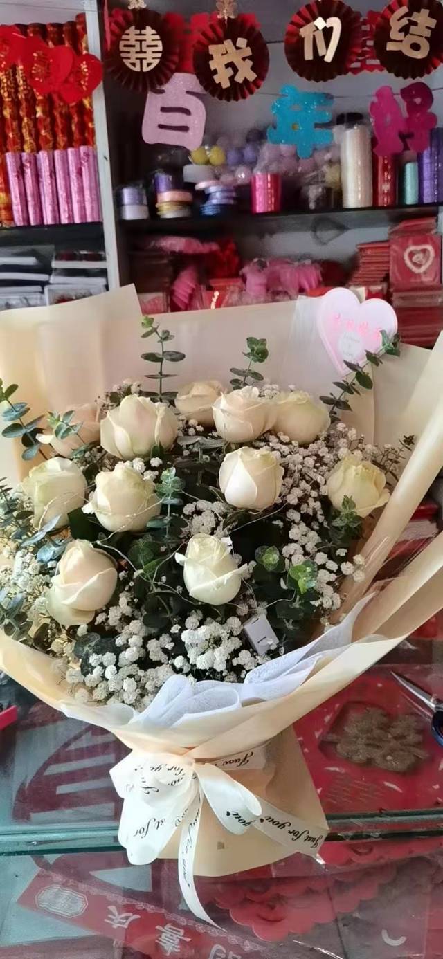 11朵白玫鲜花束,如图包 |