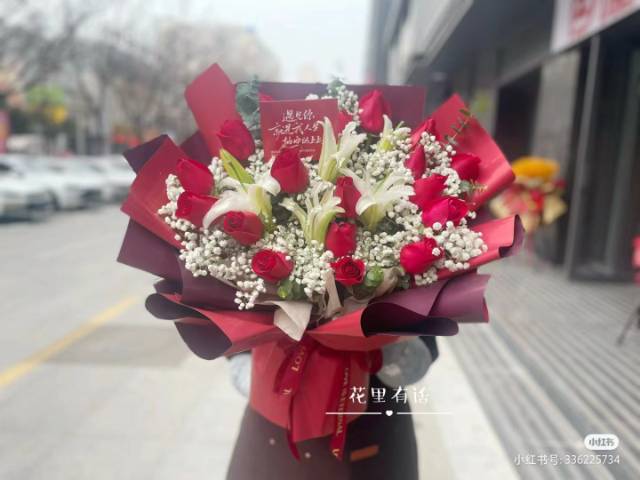 夜上海论坛19朵红玫瑰手捧花,如图包 |