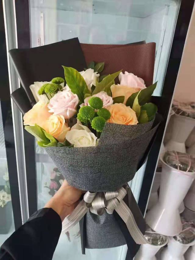 图1:9朵香槟 粉玫瑰混搭花束 数量:1 |