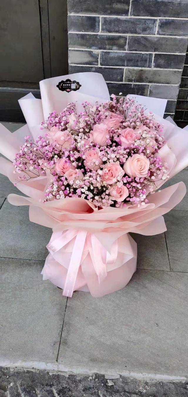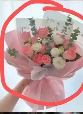 夜上海论坛21朵戴安娜配粉色满天星花束,如图 |