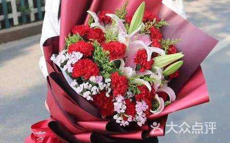 19朵红色康乃馨2支多头粉百合花束,如图 |