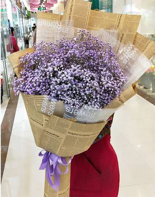 紫色满天星 里层雾面纸 外层 英文报纸 包大些 |