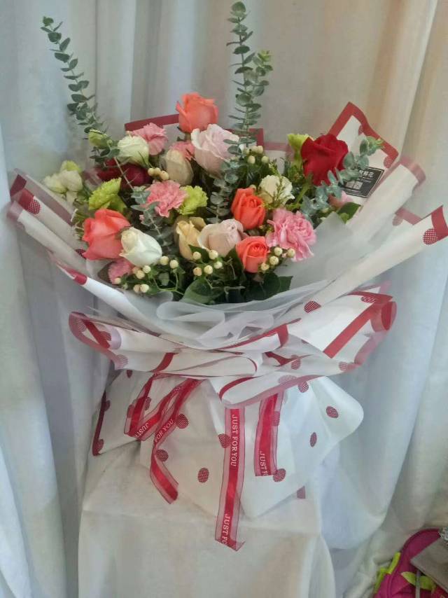 夜上海论坛1朵红玫瑰花束如图包装 |
