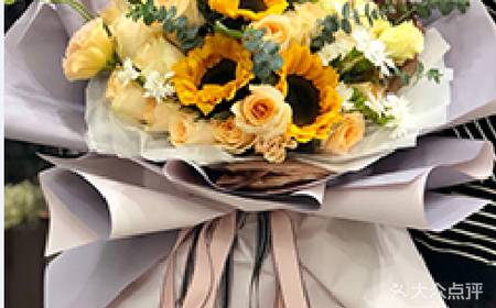 夜上海论坛16朵香槟3朵向日葵混搭梗桔花束,如图 |