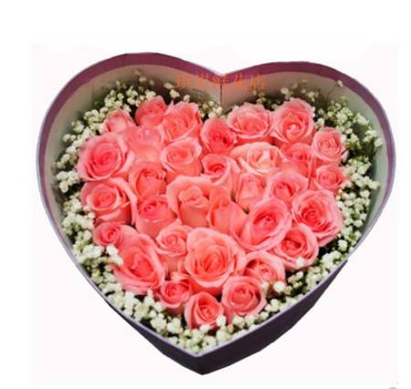 33朵粉玫瑰 白色满天星 ❤型礼盒 |