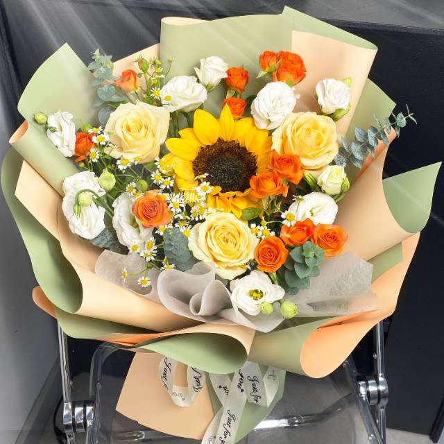 夜上海论坛向日葵香槟桔梗花束如图 |