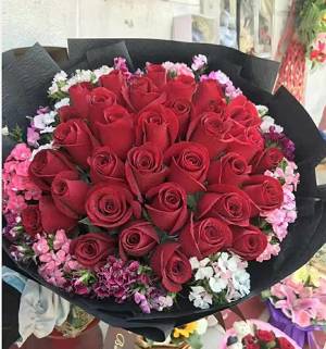 夜上海论坛6朵粉玫瑰粉色满天星混搭花束,如图