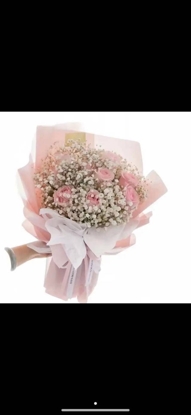 夜上海论坛9朵粉玫瑰加满天星花束 |