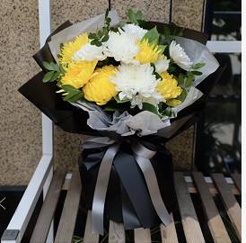 夜上海论坛13朵黄白菊花束,务必如图包装大气好看,明天 (4月2号)下午4点前送到,送前联系,上午不送。 |