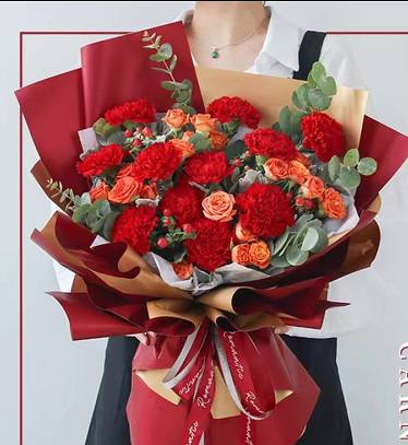 19枝红色康乃馨花束 (红色包装纸) |