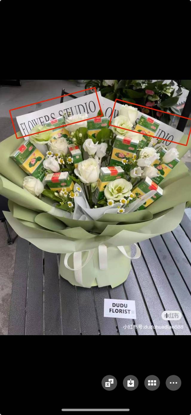 11支白玫瑰+一条荷花香烟(图片上的英文纸不要) |
