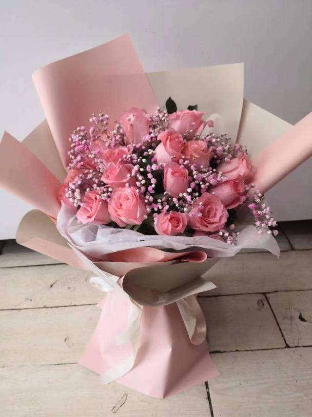 夜上海论坛16朵粉玫加粉星鲜花束,如图包 |