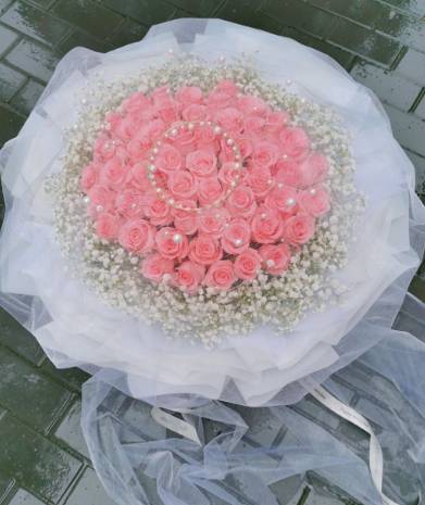 夜上海论坛6朵粉玫瑰+蓝色 粉色满天星花束(满天星多一点) |