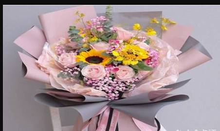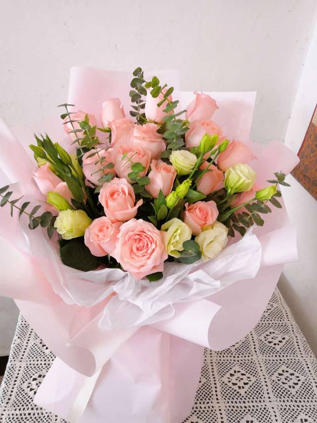 11朵粉玫瑰搭配梗桔花束 款式包装如图做 |