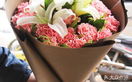 19支粉色康乃馨6朵白色百合鲜花,如图 |