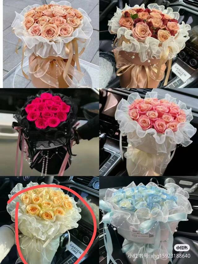 19支香槟玫瑰(左下角圈出来那款,按图款式做) |