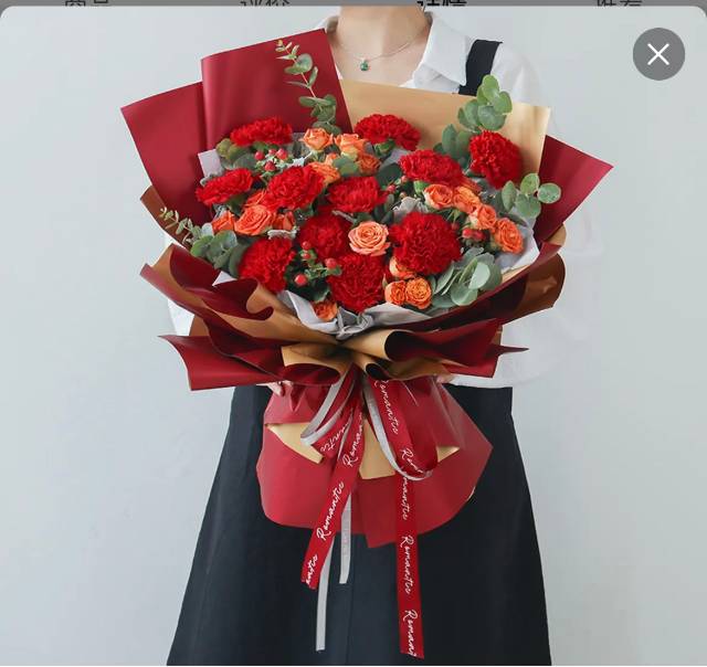 夜上海论坛11支红康乃馨配橙色多头玫花束,按图包 |