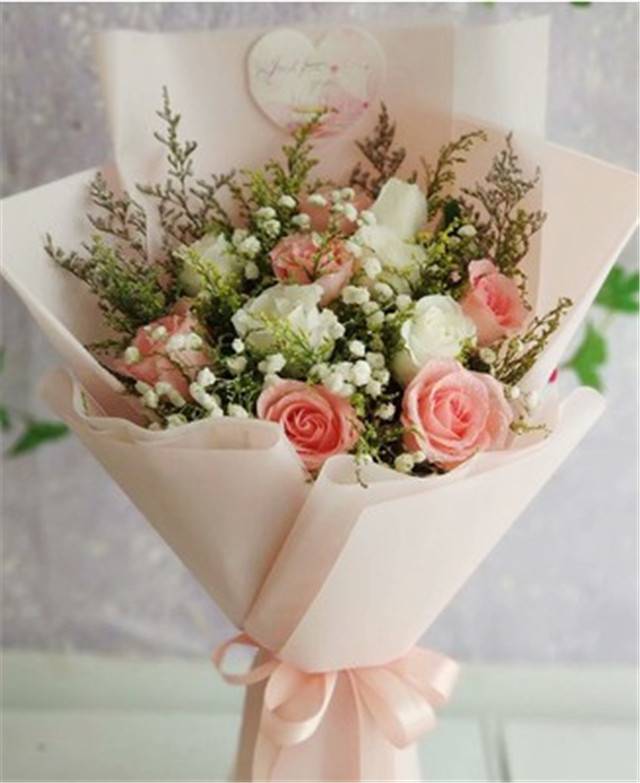 7支白玫瑰2支粉玫瑰花束,如图 |