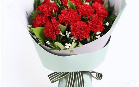 11朵粉色康乃馨花——花材新鲜,包装大气,有卡片,如图 |
