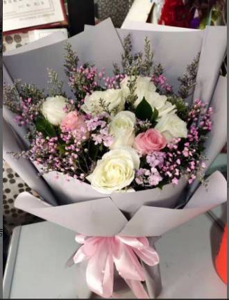 7支白玫瑰+2支粉玫瑰鲜花束,如图