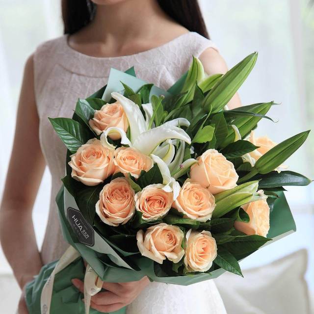11支香槟玫瑰2支多头白百合花束 数量:1 |