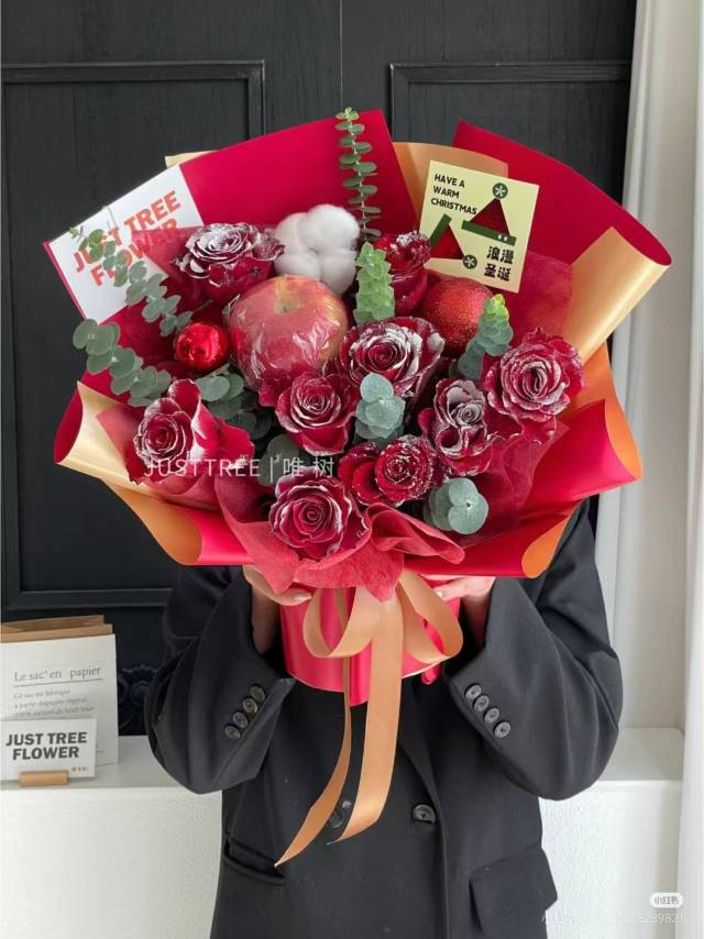 11支红玫瑰+一个红苹果花束(红玫瑰上面不用喷白) |