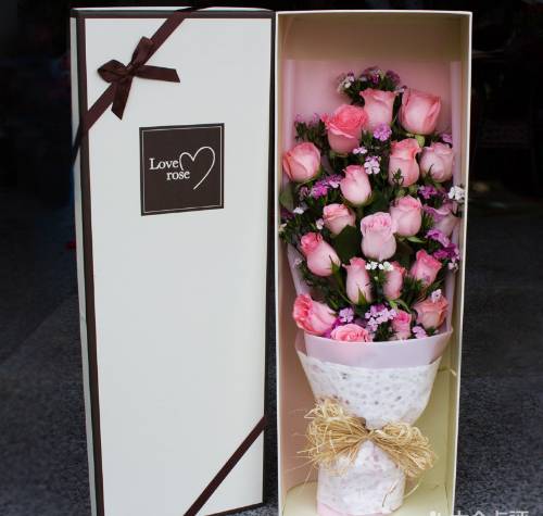 19朵粉玫瑰鲜花礼盒 注:( 包装纸和盒子换成咖啡色) 包装好看 |