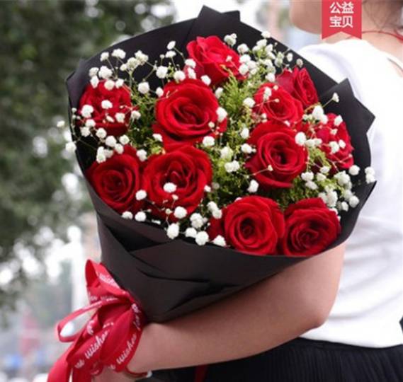 9朵粉玫花束如图(包装整好看点,再加点满天星),有卡片 |