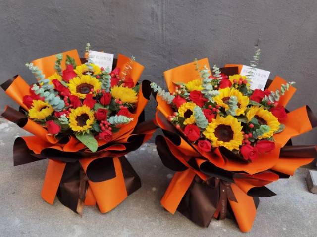夜上海论坛11朵红玫加6朵向日鲜花束,如图包 |