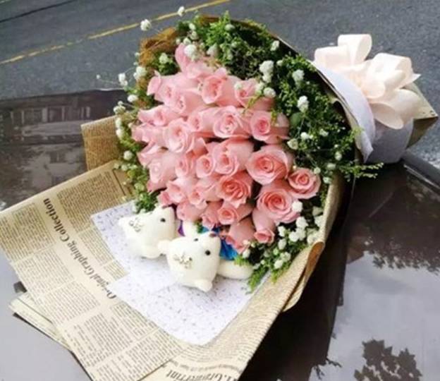 夜上海论坛33朵粉玫瑰2小熊花束,如图 |